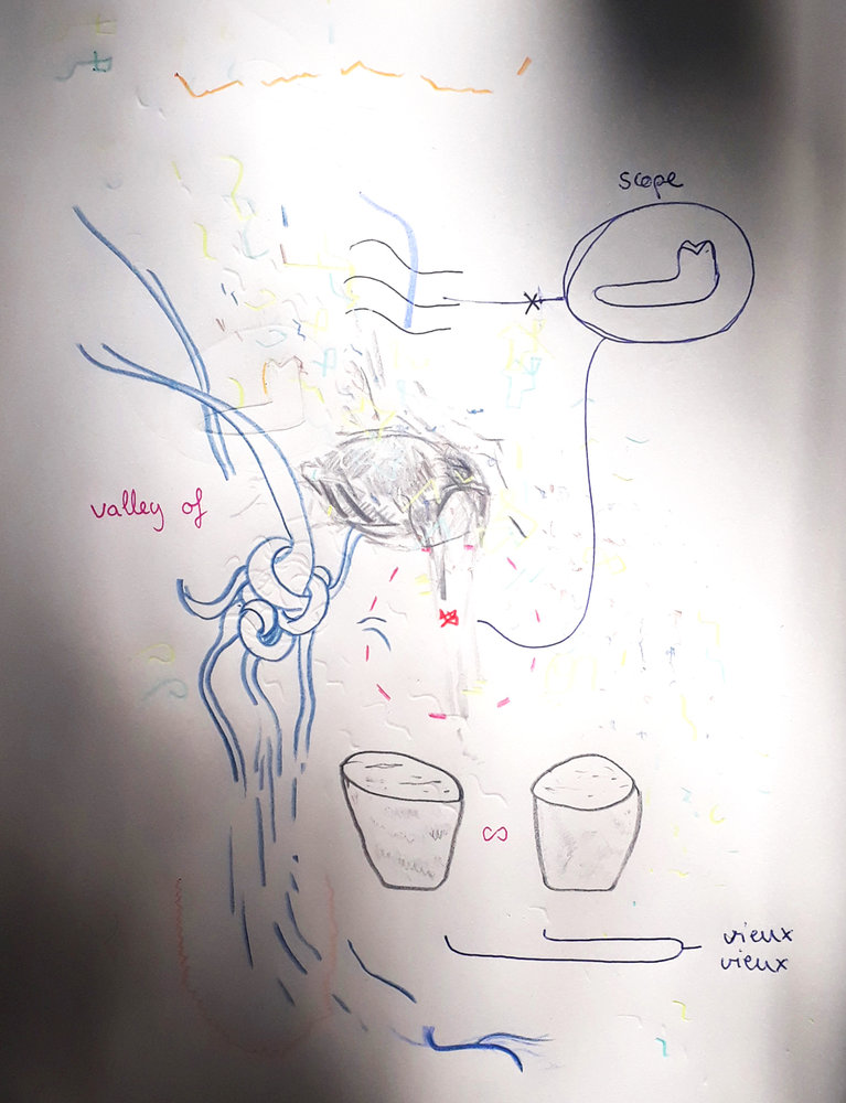 Drawing from Camille Chapon based on personal body maps of other Suddenly members