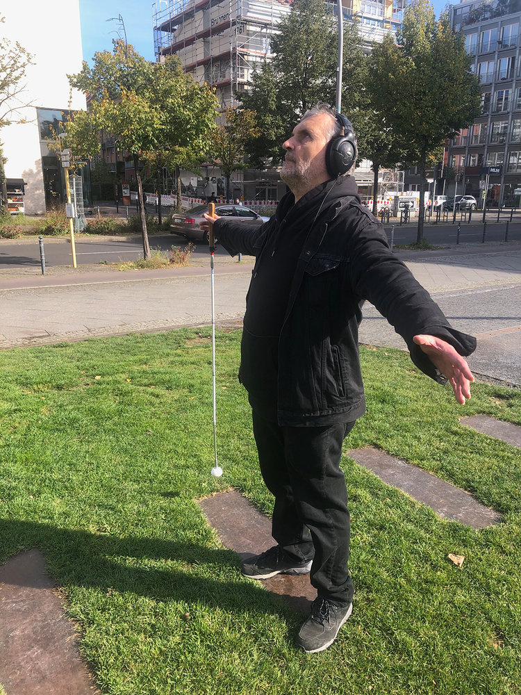 Wenn du mit der U8 Richtung Wittenau fährst, steigst du in der Bernauerstraße in Fahrtrichtung vorne aus. Der Leitstreifen führt dich zum ca. 8 m langen Gang, an dessen Ende du die Treppe nach oben auf die Mittelinsel der Brunnenstraße findest. Oben angekommen, musst du die Brunnenstraße links überqueren. Du hörst dort auch eine Ampel, die dich über die Brunnenstraße führt. Wenn du die Brunnenstraße links überquert hast, gehst du geradezu weiter bis du zwischen Mosaikpflaster und Rasen auf die stählernen in den Boden eingelassenen Nachzeichnungen der ehemaligen Häuserfassaden stößt. Nun drehst du dich 90 Grad nach links und gehst geradezu den Nachzeichnungen zwischen Mosaikpflaster und Rasen entlang (etwa 20 m) bis der Rasen in gestampfte Erde übergeht. Links  von dir ist der Verkehr der Brunnenstraße. Du kannst vielleicht die dünne, niedrige und kaum mit dem Stock spürbare Stahlkante, die den Rasen einfasst ertasten. Drehe dich nun um 90 Grad nach rechts und taste dich etwa 6 Meter dieser Kante zwischen Rasen und gestampfter Erde entlang. Der Verkehr der Brunnenstraße ist jetzt hinter dir und der der Bernauerstraße rechts von dir. Drehe dich nun um 90 Grad nach links und gehe  5 Schritte geradeaus. Du wirst dort auf die Längsseite des Orientierungsmodells der Gedenkstätte stoßen. Das Modell ist  3,5 m lang und 2 m breit und  ist auf einem 75 cm hohen Sockel waagerecht angebracht. Du bist nun an dem Ort angekommen, wo unsere Mauer Meditationen beginnen.