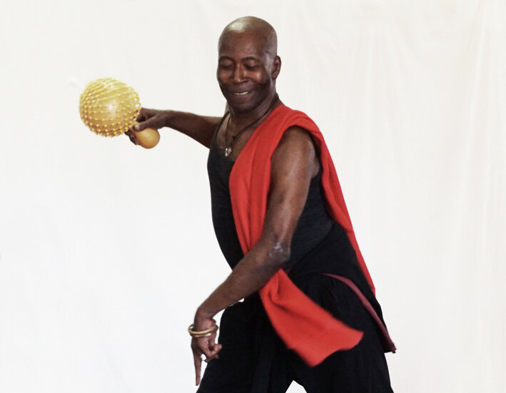Der Tänzer und Choreograf Koffi Kôkô gilt als einer der bedeutendsten Mitbegründer der modernen afrikanischen Tanzszene. In seinem Heimatland Benin ist er ein hoher Würdenträger der Voudou Religion. Sein Workshop, La Cérémonie, fokussiert auf die Beziehung zum eigenen Körper, auf Persönlichkeit und individuelle Ausdruckskraft, sowie auf den Symbolismus der Gesten im afrikanischen Tanz. Die Wiederholung der Schritte und Bewegungen in Wechselbeziehung mit der Musik erlaubt eine ganzheitliche, gelebte Erfahrung des Tanzes. Das Tanzen draußen, das direkte und tatsächliche Erleben der Natur – Erde und Steine unter den Füssen, Bäume als Resonanzkörper der Musik, der Klang des Windes – öffnet einen Raum für neue Erfahrungen. Raum für Reflexion sowie Austausch miteinander und mit Koffi unterstützen den Prozess des Verstehens. Tanz als physische und spirituelle Erfahrung und als Kommunikation mit sich selbst, mit der Natur, den Göttern und mit der Gesellschaft.