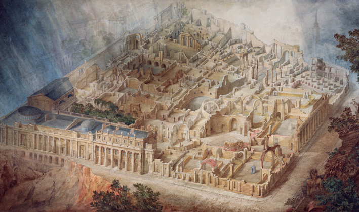 Pic: JM Gandy's aerial view of Sir John Soane's Bank of England in ruins. 1830.