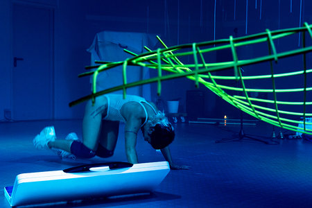 „Wenn die Performance-Künstlerin Alma Söderberg ein neues Projekt beginnt, verbringt sie zunächst Tage damit, auf dem Boden zu liegen und scheinbar nichts zu tun. Und weil es nicht einfach ist, nichts zu tun, tut sie nicht etwa nichts zu Hause. Nein, sie bewirbt sich für Residenzprogramme in gut ausgestatteten Studios, um so gut wie möglich, das zu tun, was nach Nichts aussieht. Und dann, eines Tages, steht sie auf und macht ein neues, großartiges Werk. Nichts zu tun, aber auf hervorragende Weise, ist für Söderberg der notwendige erste Schritt zu etwas Neuem. Etwas anderem.“ – Aus „The Jello, the Nothing, the Something and the Rest(s) “ von Agnes Quackels, im Dialog mit Barbara Van Lindt.
